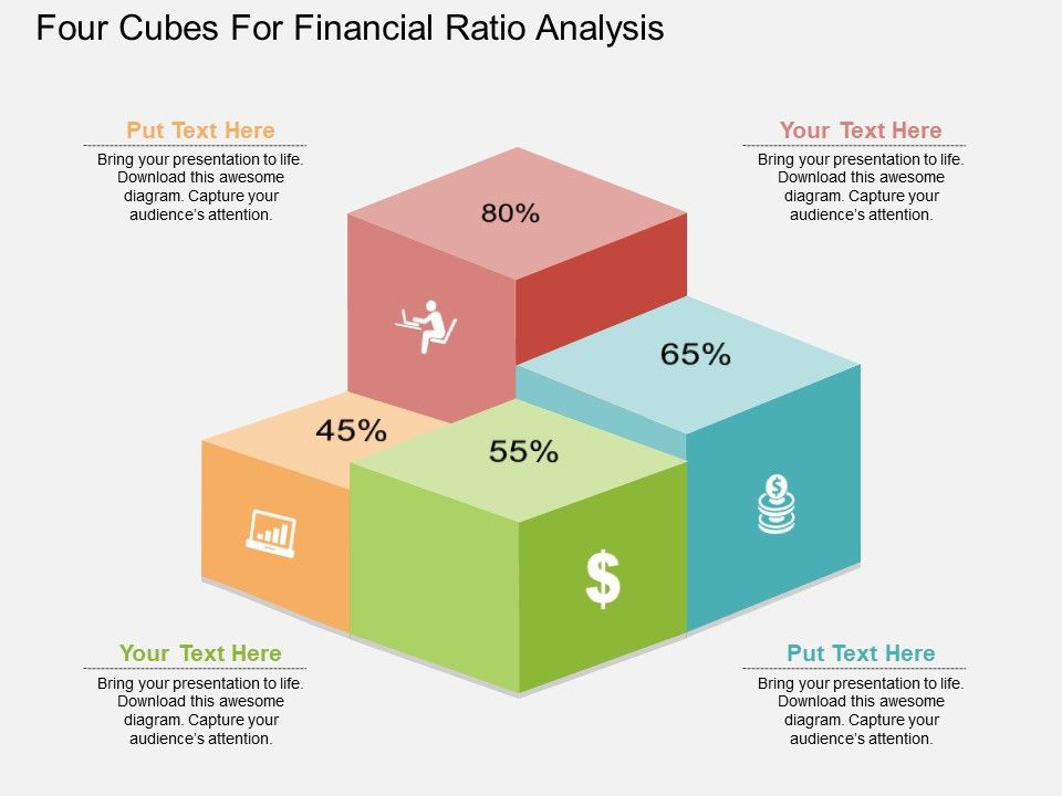 This business slide displays graphics of four cubes. This PPT slide has been designed to portray concept of financial ratio analysis. Download this PPT slide design to make interactive presentations.