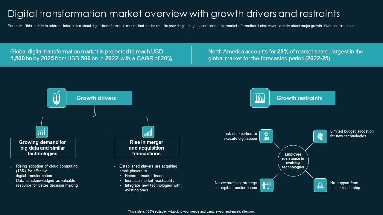 Digital Transformation Market Overview With Growth Drivers And Restraints Elements PDF with all 9 slides: