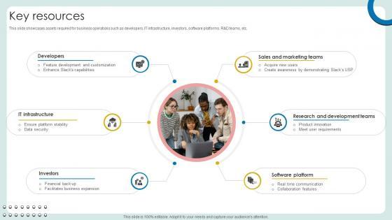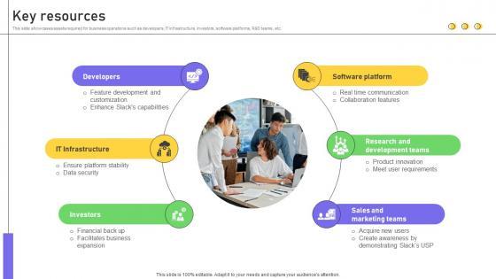 This slide showcases assets required for business operations such as developers, IT infrastructure, investors, software platforms, R and D teams, etc. Slidegeeks is here to make your presentations a breeze with Key Resources Business Productivity Platform Business Model BMC SS V With our easy-to-use and customizable templates, you can focus on delivering your ideas rather than worrying about formatting. With a variety of designs to choose from, you are sure to find one that suits your needs. And with animations and unique photos, illustrations, and fonts, you can make your presentation pop. So whether you are giving a sales pitch or presenting to the board, make sure to check out Slidegeeks first This slide showcases assets required for business operations such as developers, IT infrastructure, investors, software platforms, R and D teams, etc.