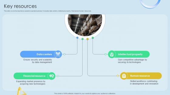 This slide covers the importance assets to operate business. It includes data centers, intellectual property, financial and human resources. Slidegeeks is here to make your presentations a breeze with Key Resources Cloud Networking Service Provider Business Model BMC SS V With our easy-to-use and customizable templates, you can focus on delivering your ideas rather than worrying about formatting. With a variety of designs to choose from, you are sure to find one that suits your needs. And with animations and unique photos, illustrations, and fonts, you can make your presentation pop. So whether you are giving a sales pitch or presenting to the board, make sure to check out Slidegeeks first This slide covers the importance assets to operate business. It includes data centers, intellectual property, financial and human resources.
