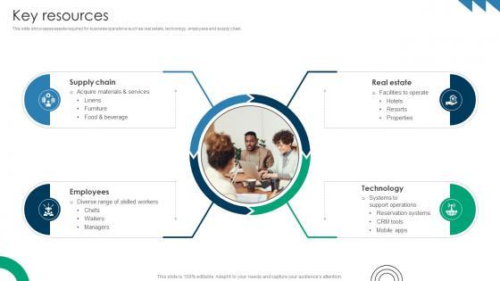 This slide showcases assets required for business operations such as real estate, technology, employees and supply chain. Slidegeeks is here to make your presentations a breeze with Key Resources Premium Hospitality Service Business Model BMC SS V With our easy-to-use and customizable templates, you can focus on delivering your ideas rather than worrying about formatting. With a variety of designs to choose from, you are sure to find one that suits your needs. And with animations and unique photos, illustrations, and fonts, you can make your presentation pop. So whether you are giving a sales pitch or presenting to the board, make sure to check out Slidegeeks first This slide showcases assets required for business operations such as real estate, technology, employees and supply chain.