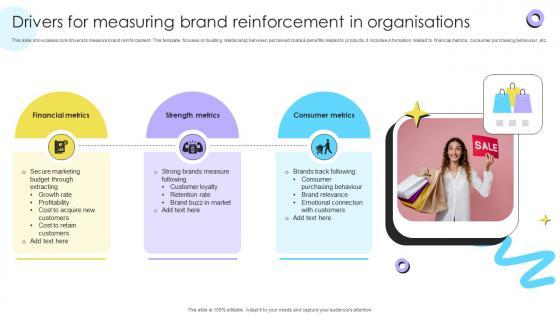 This slide showcases core drivers to measure brand reinforcement. This template focuses on building relationship between perceived costs and benefits related to products. It includes information related to financial metrics, consumer purchasing behaviour, etc. Slidegeeks is here to make your presentations a breeze with Drivers For Measuring Brand Reinforcement Encouraging Repetitive Customer Purchase Ppt Slide With our easy-to-use and customizable templates, you can focus on delivering your ideas rather than worrying about formatting. With a variety of designs to choose from, you are sure to find one that suits your needs. And with animations and unique photos, illustrations, and fonts, you can make your presentation pop. So whether you are giving a sales pitch or presenting to the board, make sure to check out Slidegeeks first This slide showcases core drivers to measure brand reinforcement. This template focuses on building relationship between perceived costs and benefits related to products. It includes information related to financial metrics, consumer purchasing behaviour, etc.