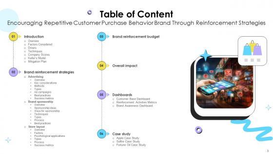 Here you can discover an assortment of the finest PowerPoint and Google Slides templates. With these templates, you can create presentations for a variety of purposes while simultaneously providing your audience with an eye-catching visual experience. Download Table Of Content Encouraging Repetitive Customer Purchase Behavior Brand Through Reinforcement Strategies to deliver an impeccable presentation. These templates will make your job of preparing presentations much quicker, yet still, maintain a high level of quality. Slidegeeks has experienced researchers who prepare these templates and write high-quality content for you. Later on, you can personalize the content by editing the Table Of Content Encouraging Repetitive Customer Purchase Behavior Brand Through Reinforcement Strategies. Our Table Of Content Encouraging Repetitive Customer Purchase Behavior Brand Through Reinforcement Strategies are topically designed to provide an attractive backdrop to any subject. Use them to look like a presentation pro.
