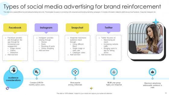 This slide showcases different social media advertising networks. This template focuses on connecting with consumers and boosting marketing campaigns. It includes information related to platforms such as Facebook, Snapchat, Instagram etc. Crafting an eye-catching presentation has never been more straightforward. Let your presentation shine with this tasteful yet straightforward Types Of Social Media Advertising For Brand Encouraging Repetitive Customer Purchase Ppt Slide template. It offers a minimalistic and classy look that is great for making a statement. The colors have been employed intelligently to add a bit of playfulness while still remaining professional. Construct the ideal Types Of Social Media Advertising For Brand Encouraging Repetitive Customer Purchase Ppt Slide that effortlessly grabs the attention of your audience Begin now and be certain to wow your customers This slide showcases different social media advertising networks. This template focuses on connecting with consumers and boosting marketing campaigns. It includes information related to platforms such as Facebook, Snapchat, Instagram etc.