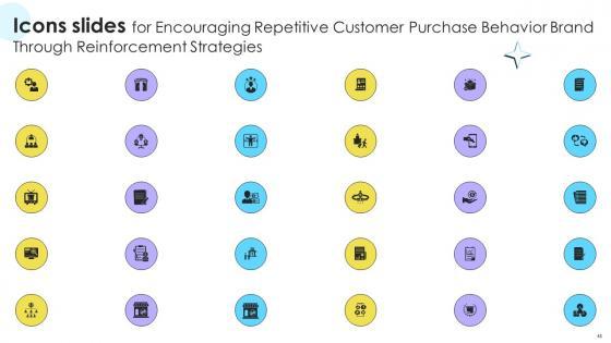Download our innovative and attention grabbing Icons Slides For Encouraging Repetitive Customer Purchase Behavior Brand Through Reinforcement Strategies template. The set of slides exhibit completely customizable icons. These icons can be incorporated into any business presentation. So download it immediately to clearly communicate with your clientele. Our Icons Slides For Encouraging Repetitive Customer Purchase Behavior Brand Through Reinforcement Strategies are topically designed to provide an attractive backdrop to any subject. Use them to look like a presentation pro.