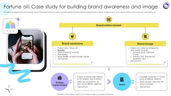 This slide showcases products represented by brands. This template focuses on holding successful positing and making tactical changes required to maintain strategic thrust. It covers aspects related to brand awareness, image building, etc. Find highly impressive Fortune Oil Case Study For Building Brand Encouraging Repetitive Customer Purchase Ppt Powerpoint on Slidegeeks to deliver a meaningful presentation. You can save an ample amount of time using these presentation templates. No need to worry to prepare everything from scratch because Slidegeeks experts have already done a huge research and work for you. You need to download Fortune Oil Case Study For Building Brand Encouraging Repetitive Customer Purchase Ppt Powerpoint for your upcoming presentation. All the presentation templates are 100 percent editable and you can change the color and personalize the content accordingly. Download now This slide showcases products represented by brands. This template focuses on holding successful positing and making tactical changes required to maintain strategic thrust. It covers aspects related to brand awareness, image building, etc.
