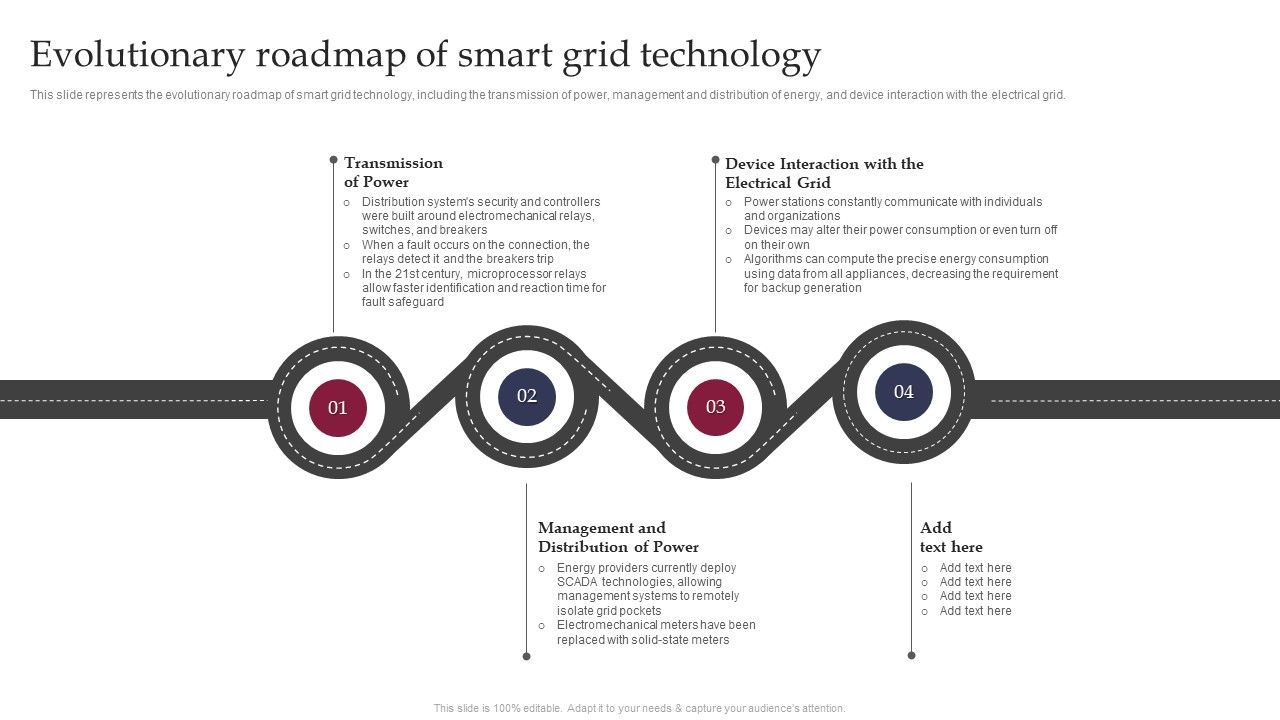 This slide represents the evolutionary roadmap of smart grid technology, including the transmission of power, management and distribution of energy, and device interaction with the electrical grid. Want to ace your presentation in front of a live audience Our Smart Grid Technology Evolutionary Roadmap Of Smart Grid Technology Microsoft PDF can help you do that by engaging all the users towards you. Slidegeeks experts have put their efforts and expertise into creating these impeccable powerpoint presentations so that you can communicate your ideas clearly. Moreover, all the templates are customizable, and easy to edit and downloadable. Use these for both personal and commercial use.