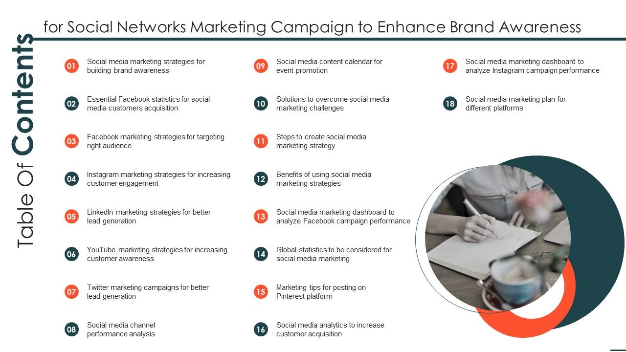 Table Of Contents For Social Networks Marketing Campaign To Enhance Microsoft PDF with all 1 slides: