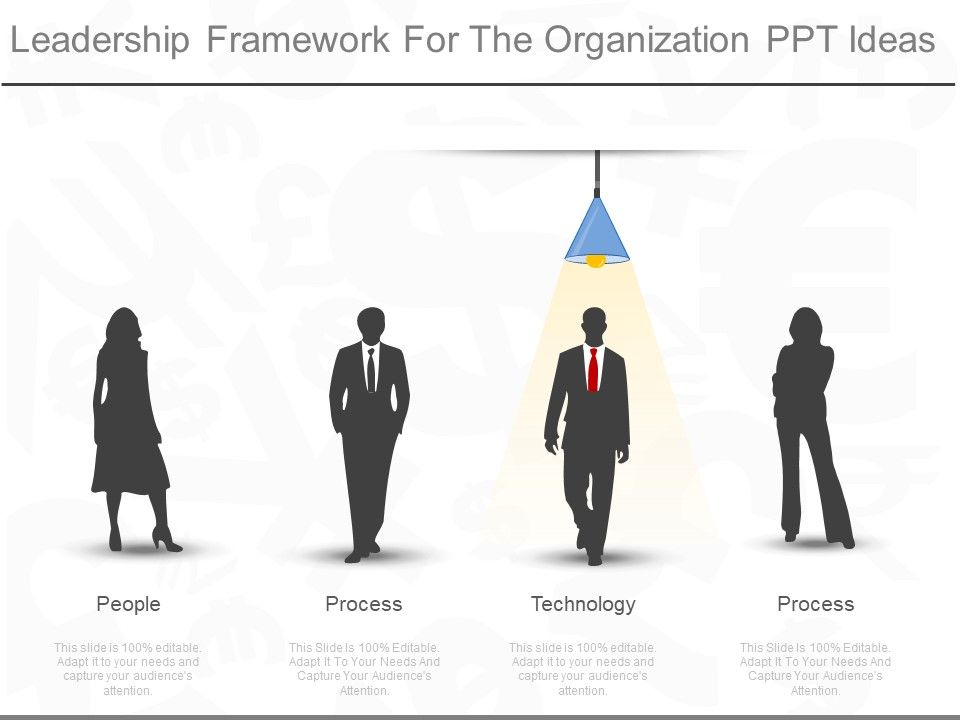 This is a leadership framework for the organization ppt ides. This is a four stage process. The stages in this process are people, process, technology, process.
